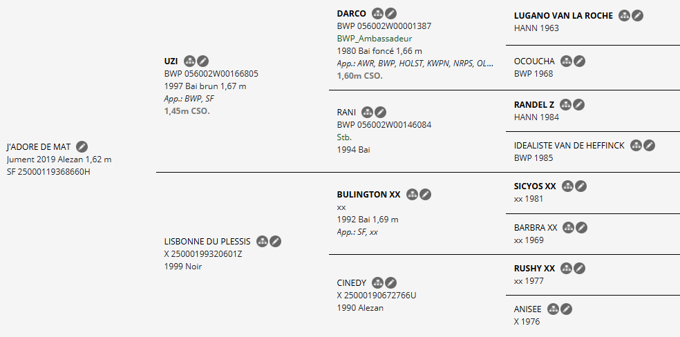 📜 Son pedigree allie puissance, sang et intelligence de la barre, avec une lignée maternelle solide et une génétique internationale.